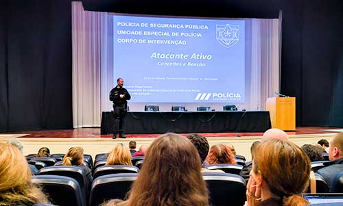 A iniciativa teve início com uma sessão teórica, que contou com cerca de 150 participantes, dedicada aos protocolos de atuação e às boas práticas de autoproteção em cenários de ameaça extrema.